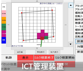 ②ICT管理装置(マルチGNSS)により、施工状況を3D数値データ管理します。