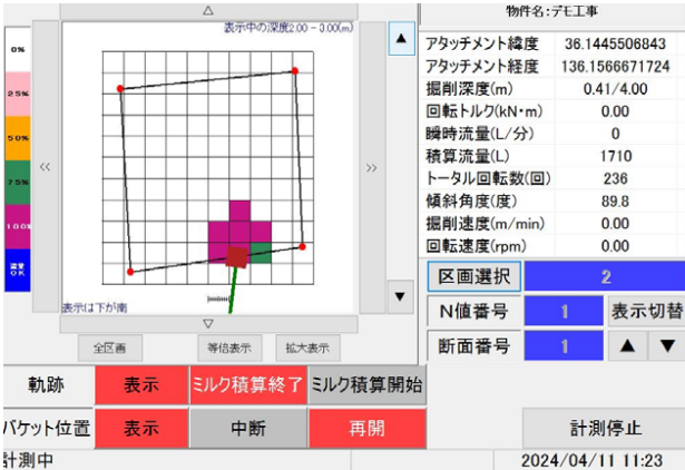 特に、深度5~6mでは、重機が従来工法より小さくなるため、仮設表層改良の仕様が低減します。